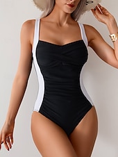 More information about Women's Swimwear One Piece Swimsuit Backless Tummy Control High Waist Slim Vacation Beach Wear Color Block U Neck Sleeveless Bathing Suits