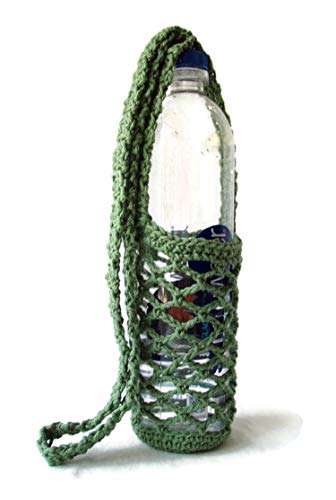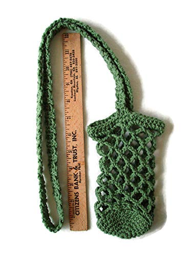 More information about Cotton Crochet Crossbody Water Bottle Bag Green Drink Carrier Beverage Sling