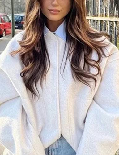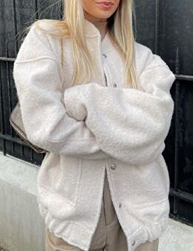 Womens Oversized Wool Blend Jackets Long Sleeve Button Down Casual Bomber Jacket Outwear with Pockets 1