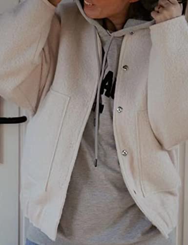 Womens Oversized Wool Blend Jackets Long Sleeve Button Down Casual Bomber Jacket Outwear with Pockets 7