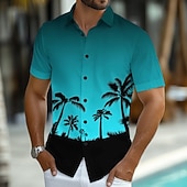 More information about Men's Coconut Tree Tropical Plants Summer Hawaiian Shirt Button Up Shirt Aloha Shirt Short Sleeve Hawaiian Resort Vacation Holiday Beach Wear Summer Spring Turndown Collared Shirts Yellow Blue Green