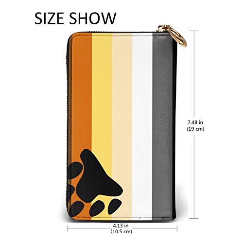 HOT ! American Flag Bear Pride Flag Ladies Long Wallet Genuine Cowhide Zip Closure Card Slot Wallet