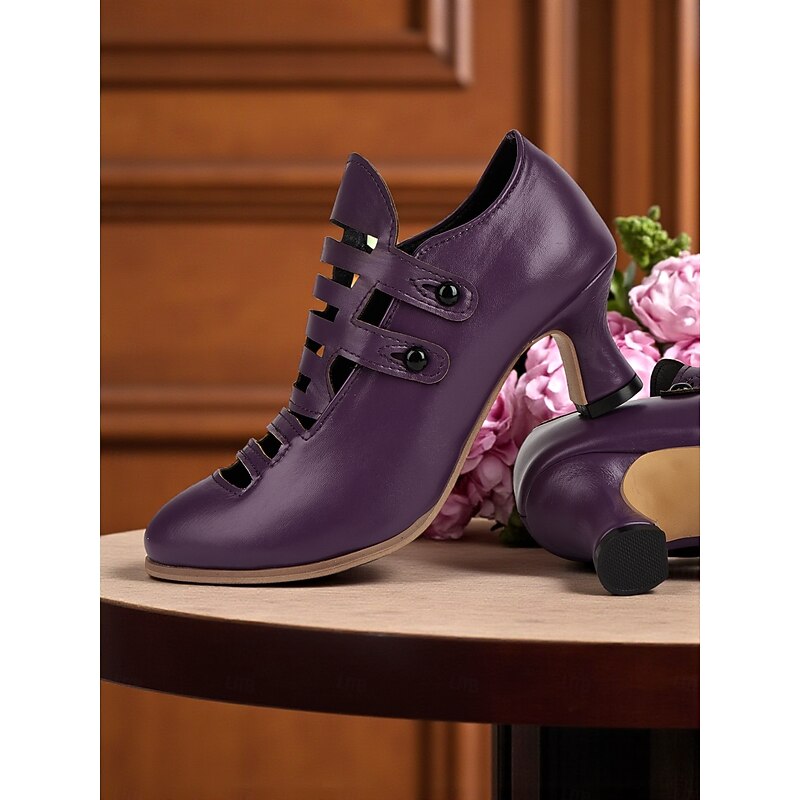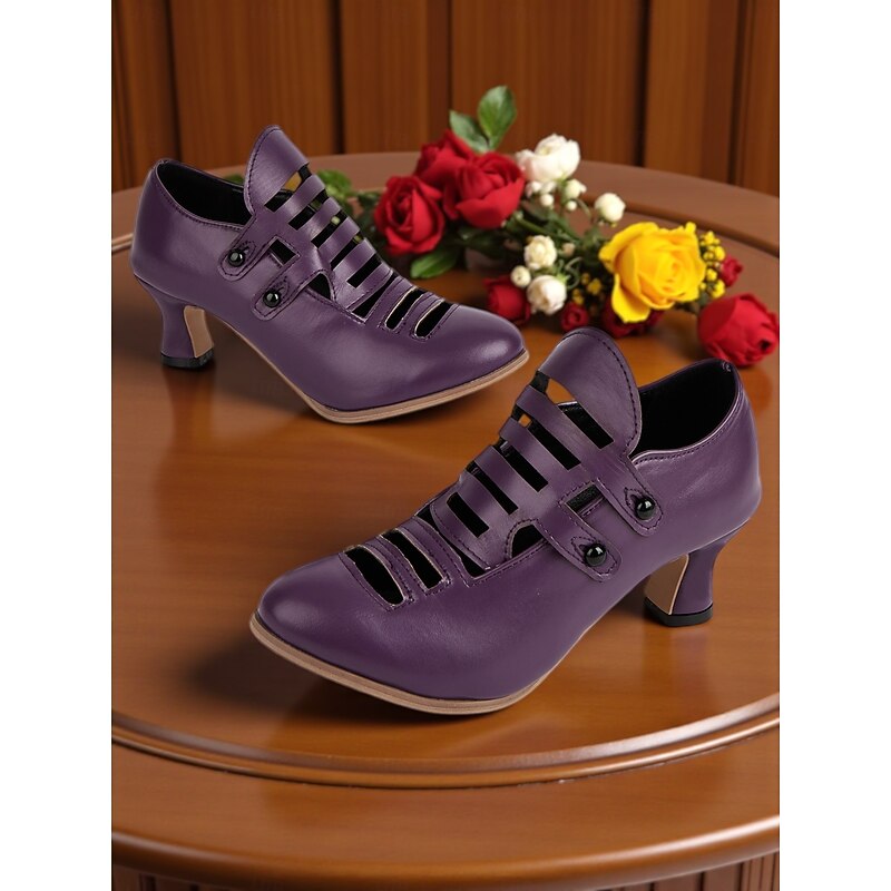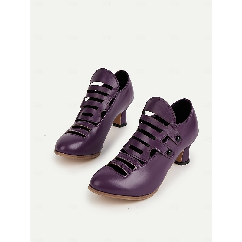 HOT ! Women's Purple Edwardian Cage Strap Heels – Vintage 1900s-Inspired Faux Leather Kitten Heel Dress Shoes, Retro Costume Footwear for Historical Reenactment, Theater, and Gothic Lolita Style