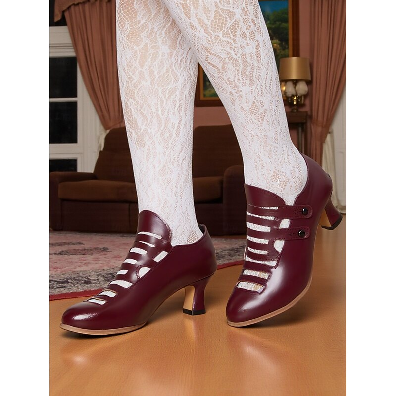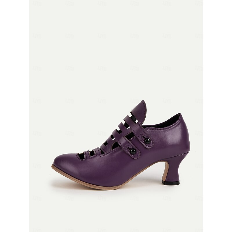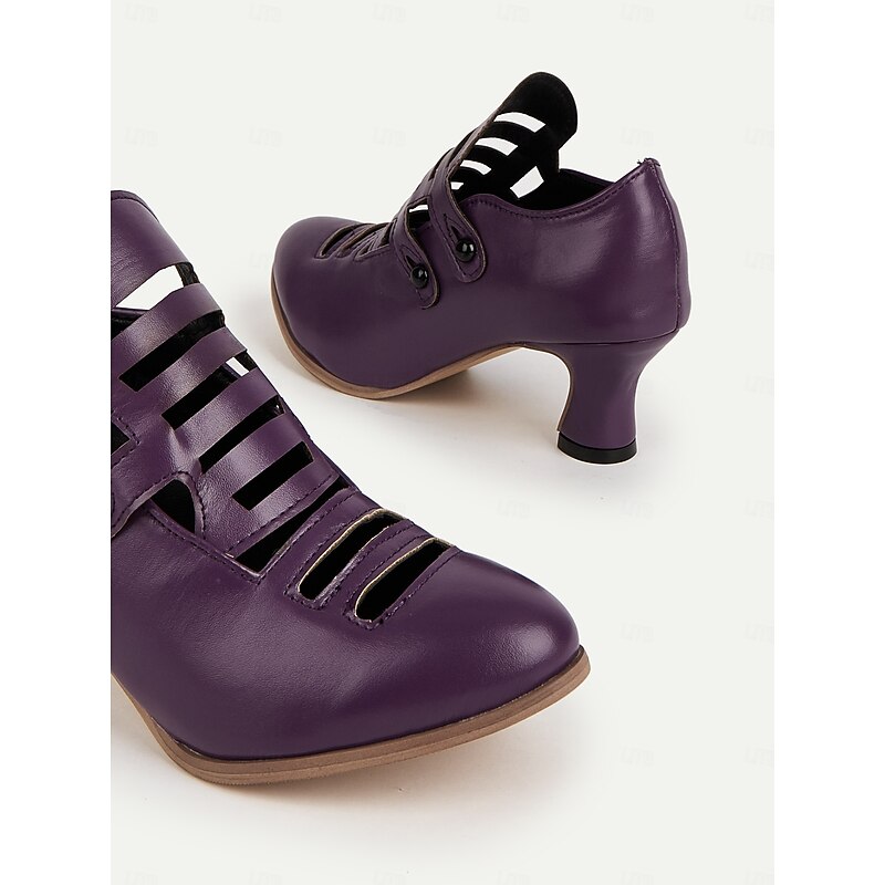 Women's Purple Edwardian Cage Strap Heels – Vintage 1900s-Inspired Faux Leather Kitten Heel Dress Shoes, Retro Costume Footwear for Historical Reenactment, Theater, and Gothic Lolita Style 24