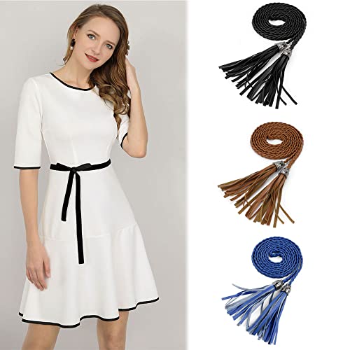 Allegra K Womens Tassels Braided Waist Belt Self Tie Woven Skinny Belts for Dress 3
