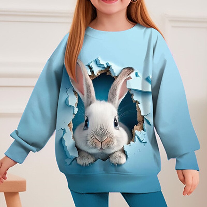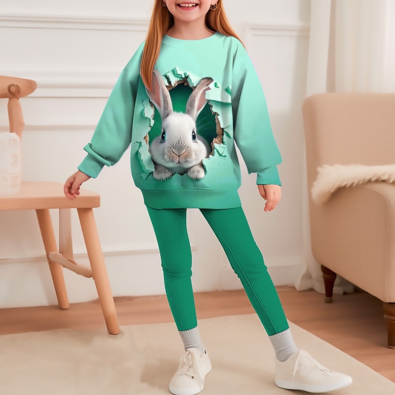 HOT ! Easter Girls' 3D Rabbit Color Gradient Sweatshirt & Legging Set Set Long Sleeve 3D Print Fall Winter Active Fashion Daily Kids 3-12 Years Crew Neck Outdoor Vacation Date Regular Fit