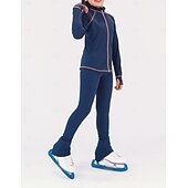 More information about Figure Skating Fleece Jacket Figure Skating Pants Figure Skating Jacket with Pants Women's Girls' Ice Skating Jacket Tights Outfits Dark Navy Patchwork Thumbhole Spandex Stretchy Training Practice
