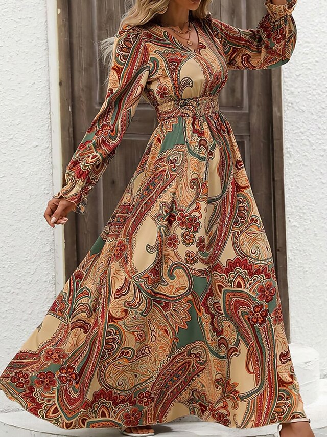 Women's Maxi Dress Boho Chic Dresses Boho Dress Stylish Casual Vacation Daily Regular Fit Floral Long Sleeve V Neck Black Green Khaki Spring Fall 7