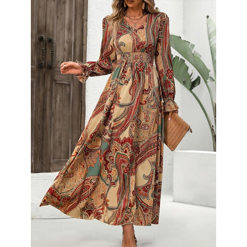 HOT ! Women's Maxi Dress Boho Chic Dresses Boho Dress Stylish Casual Vacation Daily Regular Fit Floral Long Sleeve V Neck Black Green Khaki Spring Fall