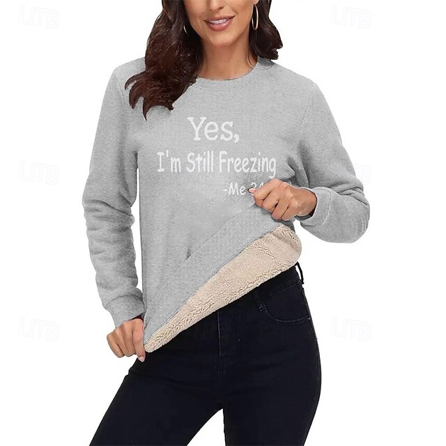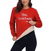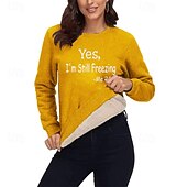 More information about Women's Pullover Sweatshirts Letter Streetwear Casual Sherpa Fleece Long Sleeve Crew Neck Regular Tops Street Going out Print Black Yellow Pink Red Blue Winter