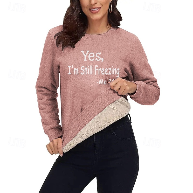 HOT ! Women's Pullover Sweatshirts Letter Streetwear Casual Sherpa Fleece Long Sleeve Crew Neck Regular Tops Street Going out Print Black Yellow Pink Red Blue Winter