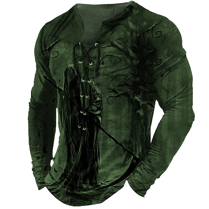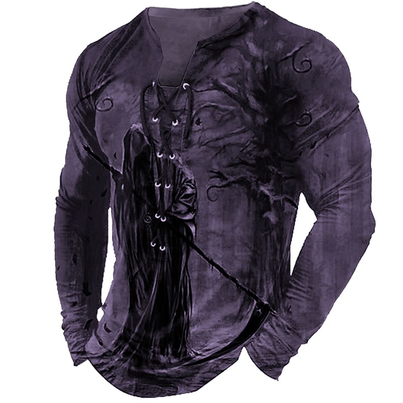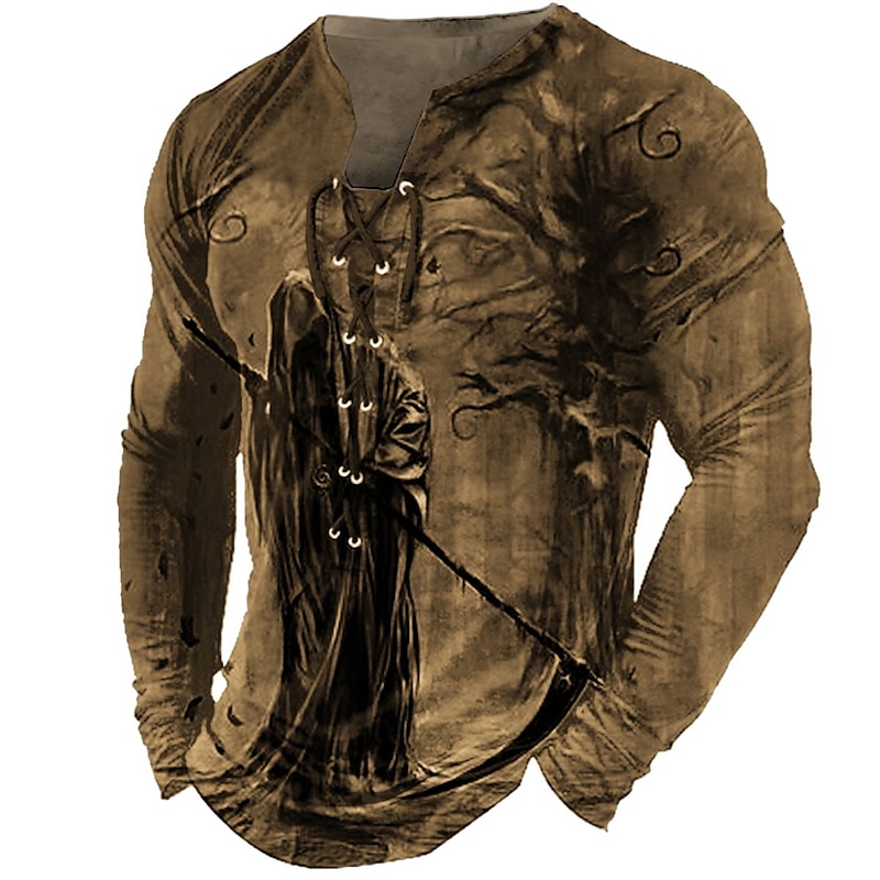 More information about Men's T shirt Tee Tee Graphic Cool Skulls Human Collar Clothing Apparel 3D Print Outdoor Street Long Sleeve Lace up Print Designer Stylish Vintage Basic