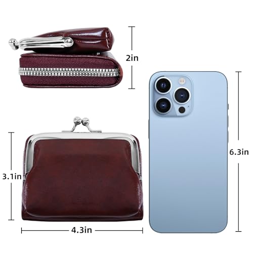 Detachable 2 in 1 Genuine Leather Wallet for Women Credit Card Holder with Zipper Coin Purse (Wine Red) 6