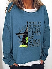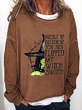 More information about Halloween Women's Sweatshirts Witch Graphic Letter Vintage Fashion Casual Long Sleeve Crew Neck Regular Tops Street Casual Print Blue Brown Green Fall Winter