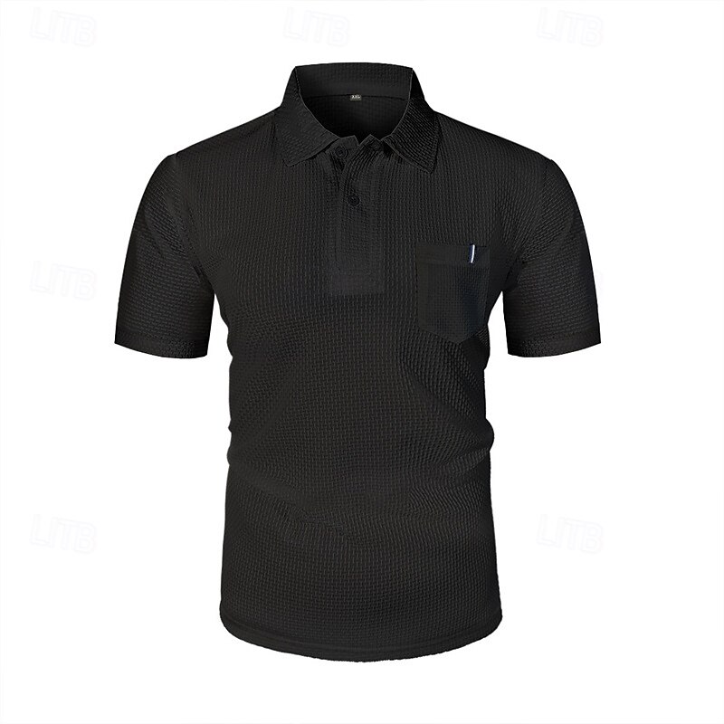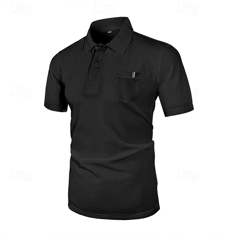 More information about Multi Packs 3pcs Men's Lapel Short Sleeves White / Black / Blue Button Up Polos Golf Shirt Golf Polos Shirts Jacquard Plain Vacation Daily Wear Polyester Summer