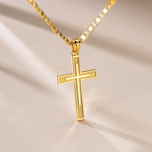 • : Sturdy and Stylish Mariner Chain :This 14k gold cross necklace for women features a robust Mariner chain, celebrated for its aesthetic charm. The non-adjustable dainty cross necklace for women gold measures a generous 48cm, providing a comfortable and secure fit for those preferring a longer length