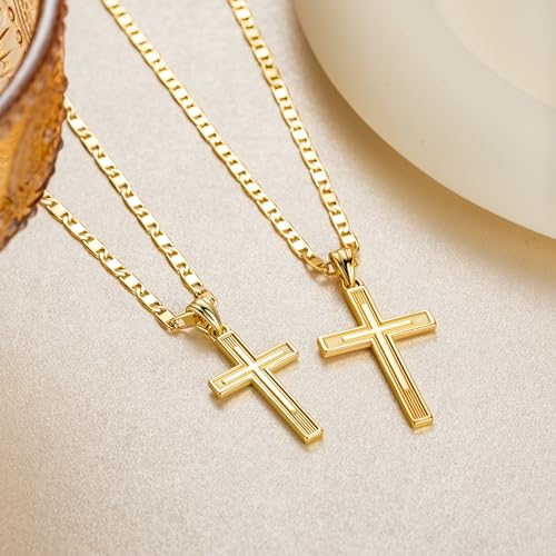 Cross Necklace for Women Gold Cross Necklaces for Women 14K Gold Crosses Chain Pendant Necklace for Womens Double-Layered Pendant Crosses Chain Necklaces for Womens 26/30mm 6