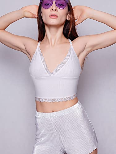 4 Pcs Women's Sleeveless Cami Crop Top Camisole Lace Trim V Neck Spaghetti Strap Tank Tops for Women Girl Ribbed Rave Clothes 5