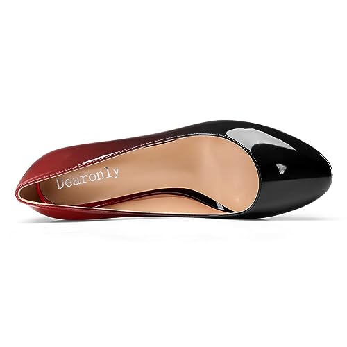 DearOnly Womens Close Round Toe Sexy Casual Slip-on Pumps Patent Leather Mid Heel Basic Classic Office Shoes 2.6 Inches Heels 2