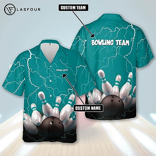 HOT ! LASFOUR Personalized Bowling Hawaiian Shirts for Men, Men's Bowling Button-Down Short Sleeve, Crazy Bowling Team Shirts