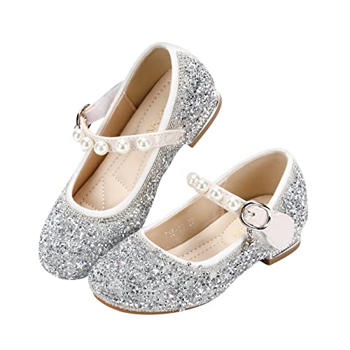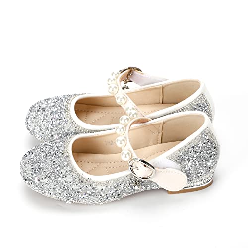 Little Girls Glitter Low Heel Dress Shoes Flower Mary Jane Wedding Party Princess Ballet Flats 6
