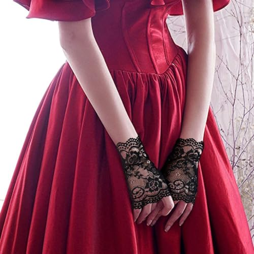 • Exquisite Lace Design: Crafted from delicate black lace, these gloves add a touch of sophistication and allure to any ensemble, making them ideal for formal events or costume-themed parties.