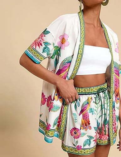 Women Boho Tropical Print Beach Cover Up Shorts Set 2 Piece Summer Lounge Outfit Lightweight Swimwear Matching Outfit 2