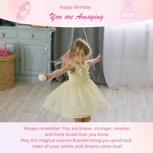 • Pink Pearl Unicorn Bracelet: Elastic band & lustrous pearls combine comfort and elegance, Ideal for ages 4+, adapting from play to special occasions, Symbolic keepsake celebrating her journey with love