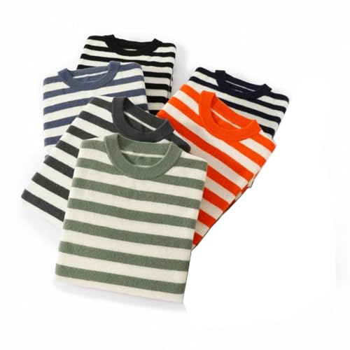 Men's Merino Wool Sweater O-Neck Stripe Pullover Fall Winter Cashmere Knitted Business Casual Sweater 6