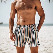 More information about Men's Striped Geometric Pattern Swim Shorts Board Shorts Swimming Trunks Mid Waist Tropical Streetwear Hawaiian Vacation Daily Holiday Drawstring Elastic Waist 3D Print Designer Clothing Apparel