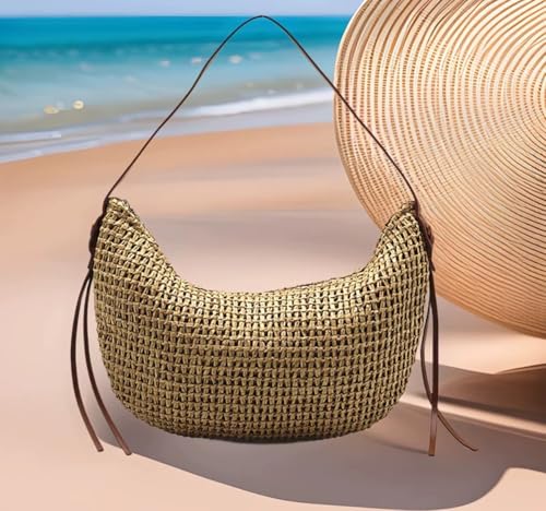 HOT ! Oversized Dumpling Straw Purse, Handmade Woven Shoulder Bag, Summer Beach Clutch Blending Quirky Style and Practicality