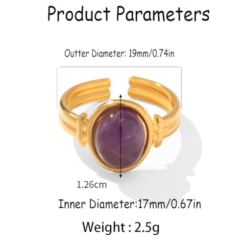 • SIZE & STYLE: Adjustable. Oval Gemstone Statement Ring: Inner Diameter: 17mm/0.67in. Please kindly refer to the product image. Open wrap band design allows for easy size adjustment while maintaining a secure and comfortable fit on most finger sizes