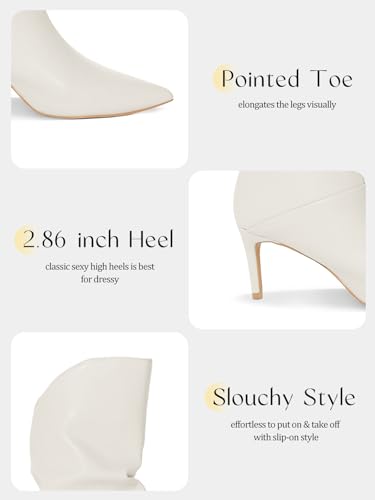 More information about Coutgo Womens Slouchy Mid Calf Boots Stiletto High Heel Leather Booties Pointed Toe Pull on Fall Winter Shoes