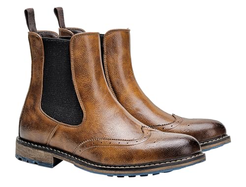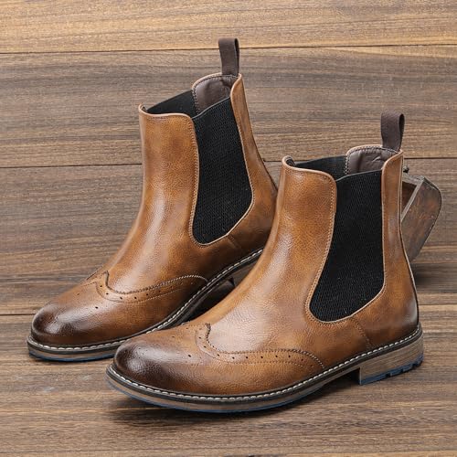 Santimon Chelsea Boots Men Casual Dress Leather Wingtips Slip On Boots Wedding Fashion Tuxedo Formal Ankle Boots for Men 7