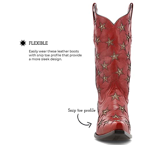 BLACK STAR Marfa Boots - Women's Inlay Western Boots Handcrafted with Full-Grain Leather Upper with 12"" Shaft, Snip Toe Profile, CellSole Footbed,and Soft Leather Lining 5