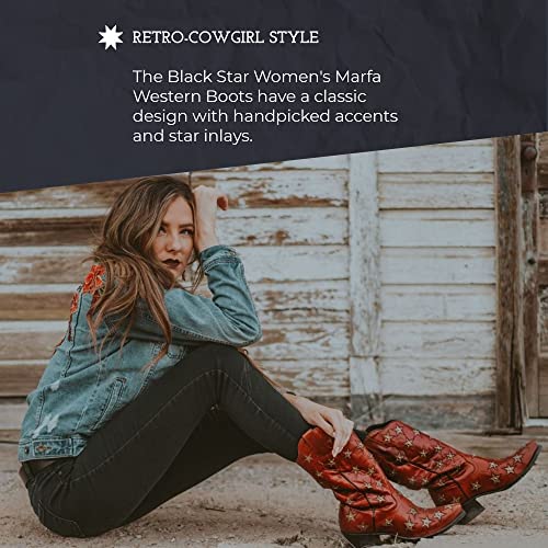 • TIMELESS DESIGN: The Black Star Women's Marfa Western Boots are adorned with vintage stars inlays and handpicked accents that give you a timeless showstopping look