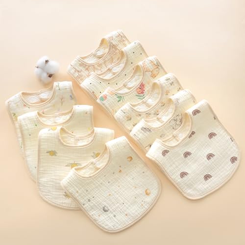 HOT ! MUKIN Baby Muslin Bibs, Cotton Drooling Feeding Towels, Adjustable Snap Closure, Various Prints, 10 Pack