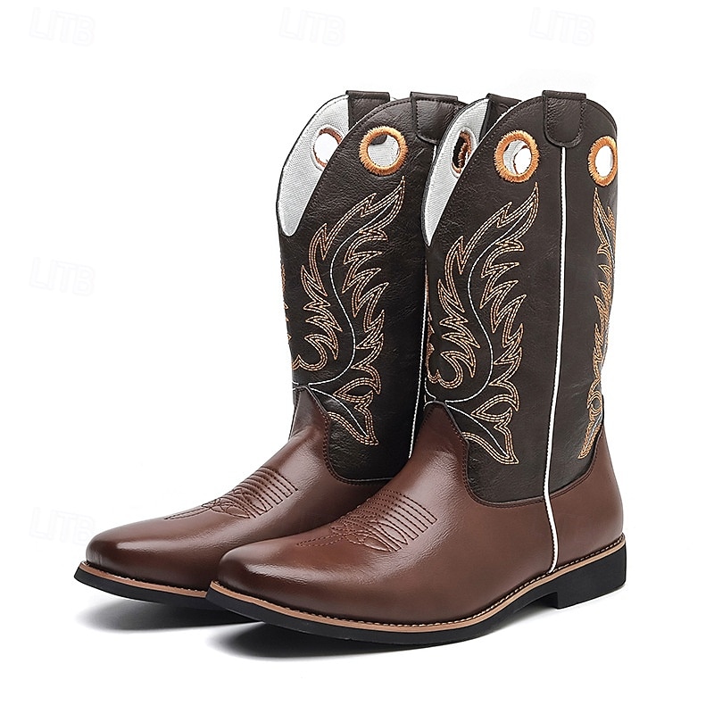 HOT ! Men's Embroidered Faux Leather Cowboy Boots – Classic Western Riding Boots with Stitched Design for Outdoor, Country Dance and Casual Wear