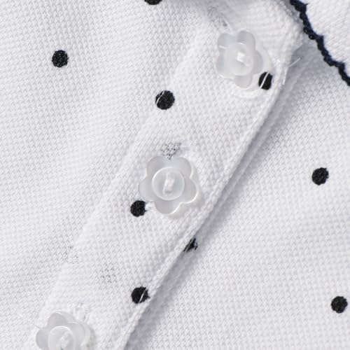 • 【Charming Black & White Design】 Classic Peter Pan collar and playful black polka dots on a crisp white tee create a timeless, stylish look. Ideal for photos, parties, or everyday adventures. 【Easy Dressing & Active Fit】 Polo collar with 2-button closure and stretchable ribbed sleeves ensure hassle-free dressing. Roomy cut allows freedom of movement for running, jumping, and play.