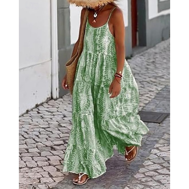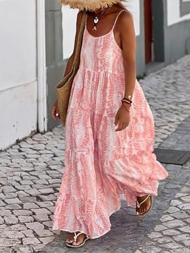 in-demand ! Women's Long Dress Maxi Dress Casual Dress Swing Dress Slip Dress Boho Dress Fashion Outdoor Party Holiday Regular Fit Tie Dye Sleeveless Spaghetti Strap Black Pink Green Summer