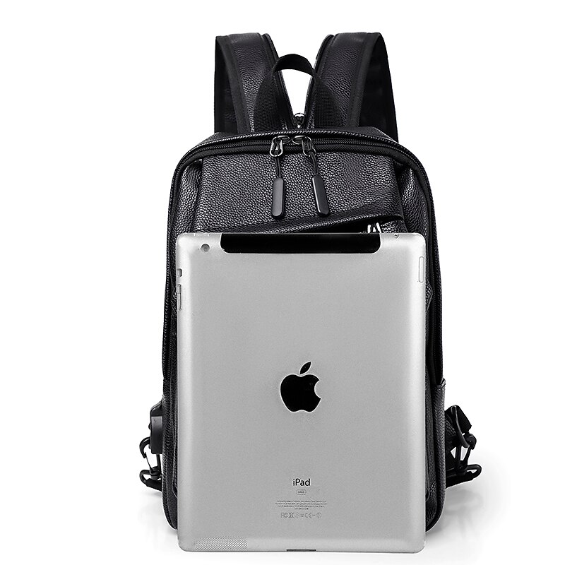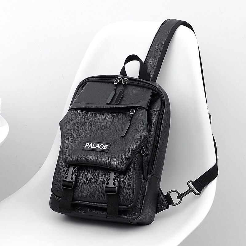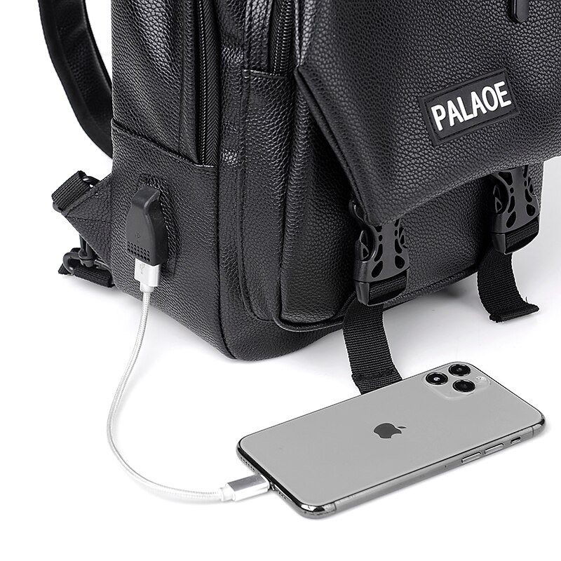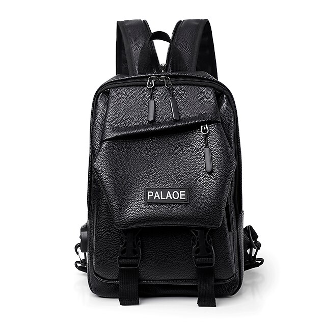 Men's Black Faux Leather Backpack with Buckle Straps and Zipper Pockets – Stylish Anti-Theft Travel and Commuter Bag for Work or Daily Use 13