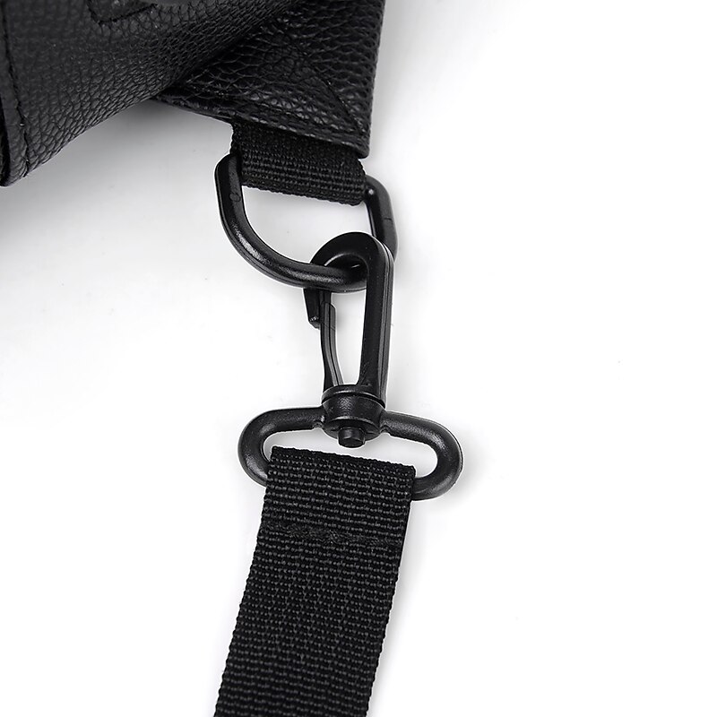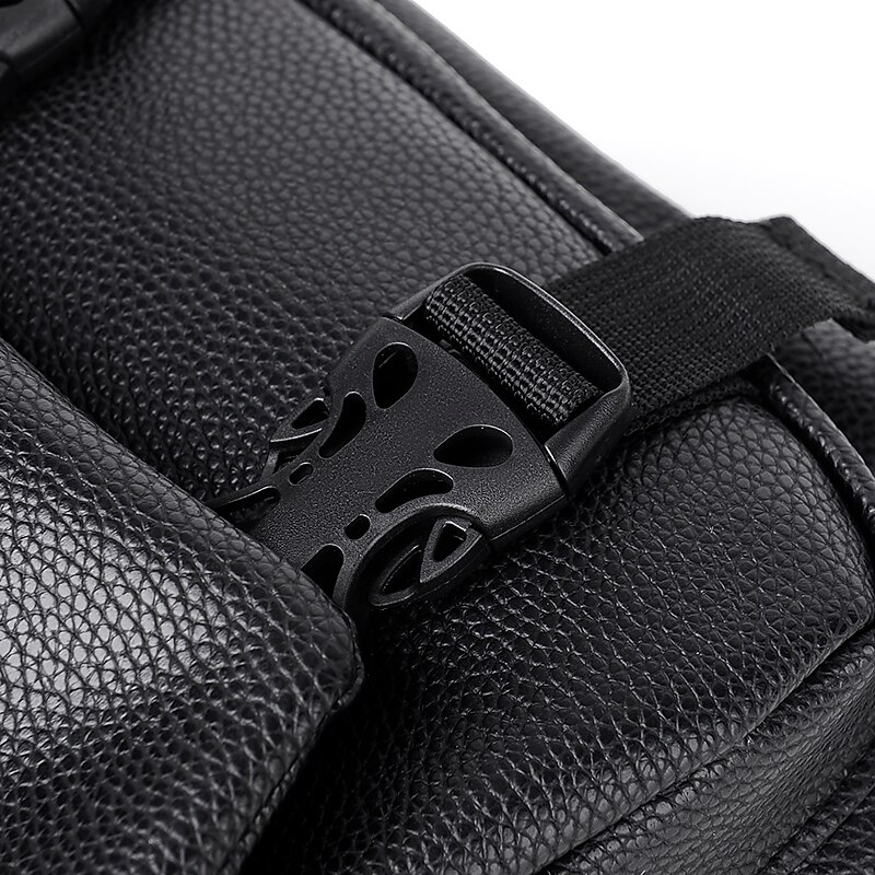 Men's Black Faux Leather Backpack with Buckle Straps and Zipper Pockets – Stylish Anti-Theft Travel and Commuter Bag for Work or Daily Use 11