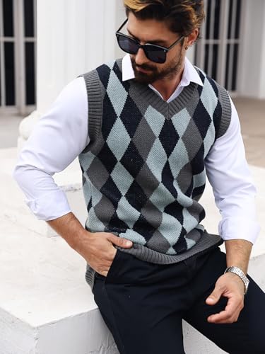 More information about SOLY HUX Men's Plaid Sweater Vests Sleeveless V Neck Argyle Sweater Autumn Winter Warm Knitwear Tank Tops