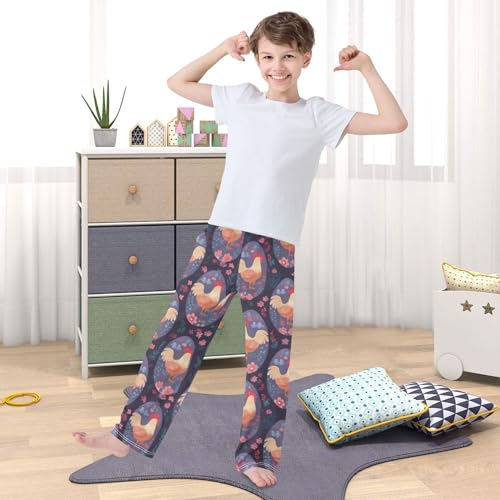 Rooster Egg Floral Boys Long Pants Soft Trousers Elastic Waist Kids Lounge Bottoms with Pockets S-XL 1