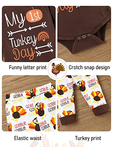 Hipea My First Thanksgiving Baby Boy Outfit Pumpkin Romper and Turkey Pants Infant Newborn Thanksgiving Clothing Sets 3