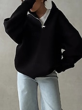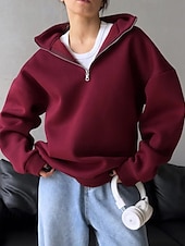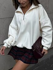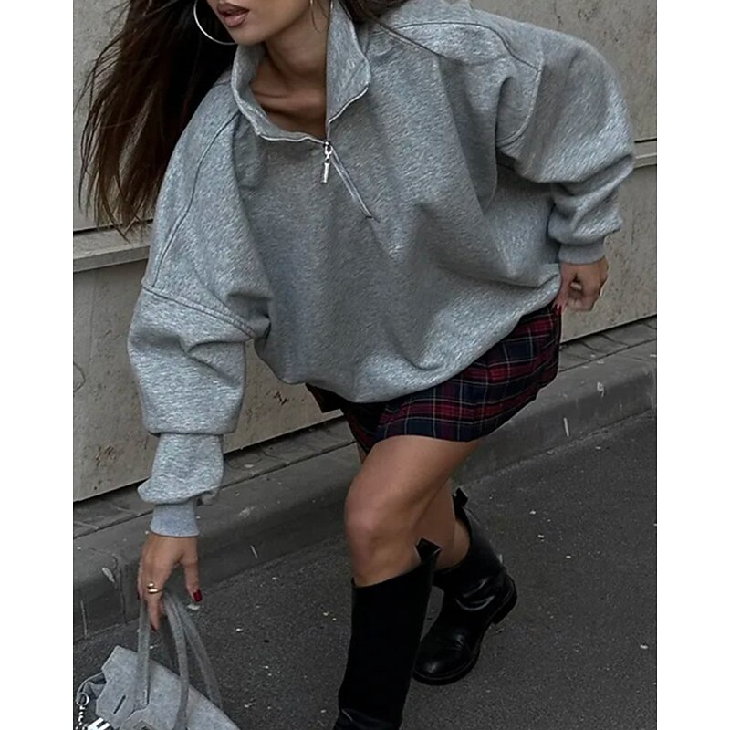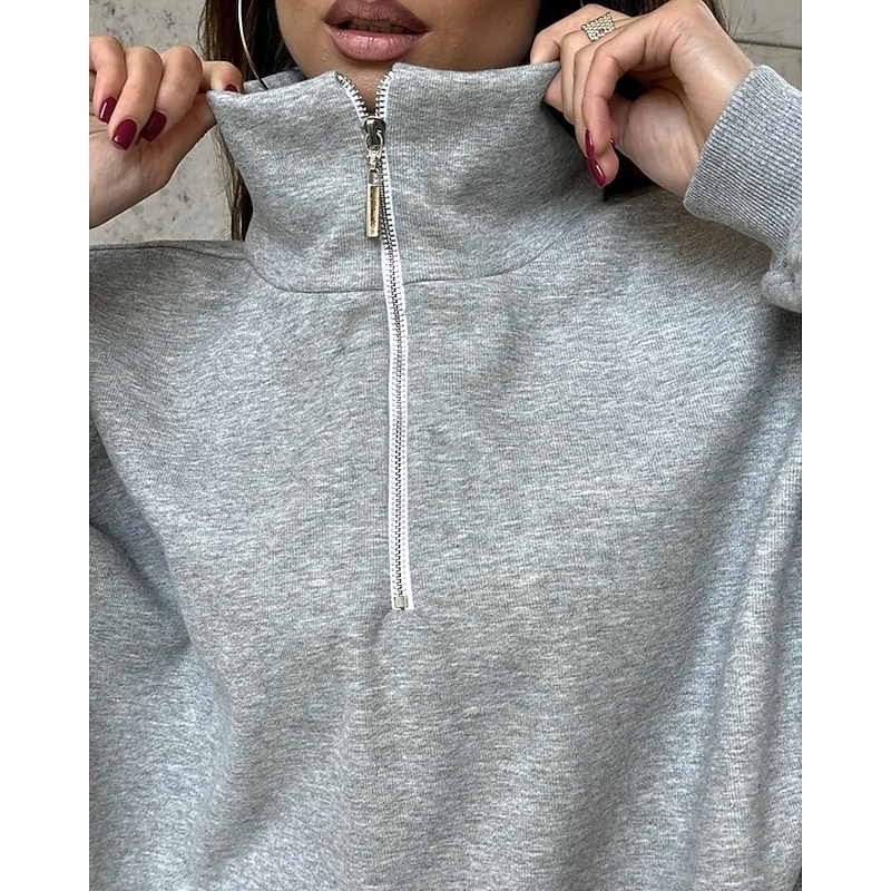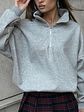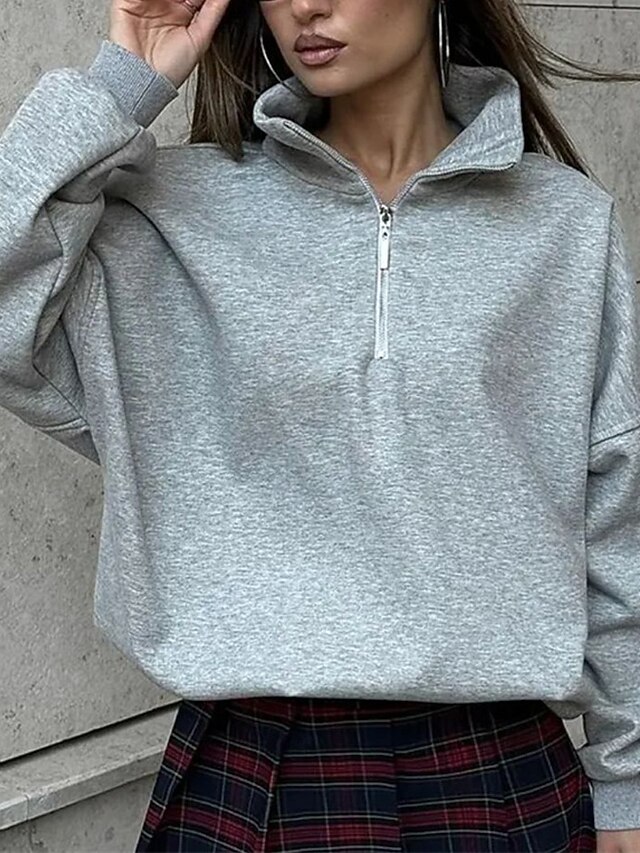 More information about Women's Pullover Sweatshirts Zip Up Sweatshirts Plain Sports Fashion Casual Long Sleeve High Neck Regular Tops Street Dailywear Going out Half Zipper Quarter Zipper Zipper Light Grey Fall Winter