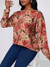 More information about Women's Sweater Fashion Streetwear Casual Floral Graphic Crew Neck Digital print Long Sleeve Regular Tops Knit Outdoor Red Fall Winter