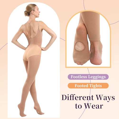 MANZI Full Body Dance Tights for Women Nude Ballet Leotard Convertible with Adjustable Straps Soft Semi Opaque Adult Tights 5