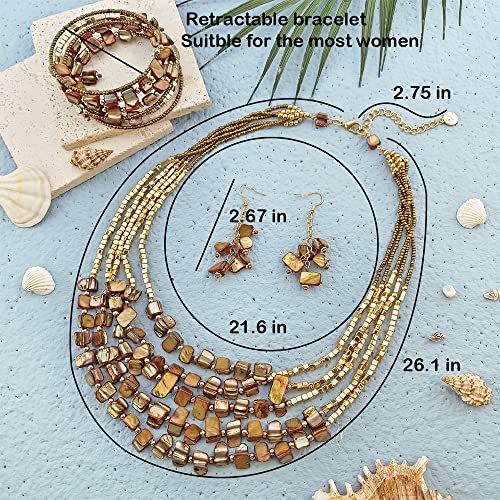 Firstmeet Bohemian Layered Shell Beaded Necklace Set Seed Bead Irregular Costume Jewelry for Women 4