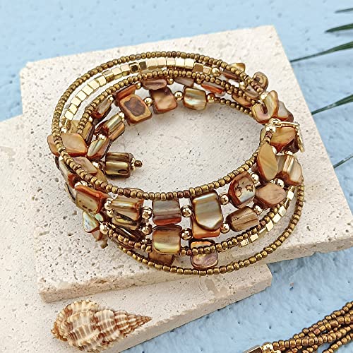 More information about Firstmeet Bohemian Layered Shell Beaded Necklace Set Seed Bead Irregular Costume Jewelry for Women